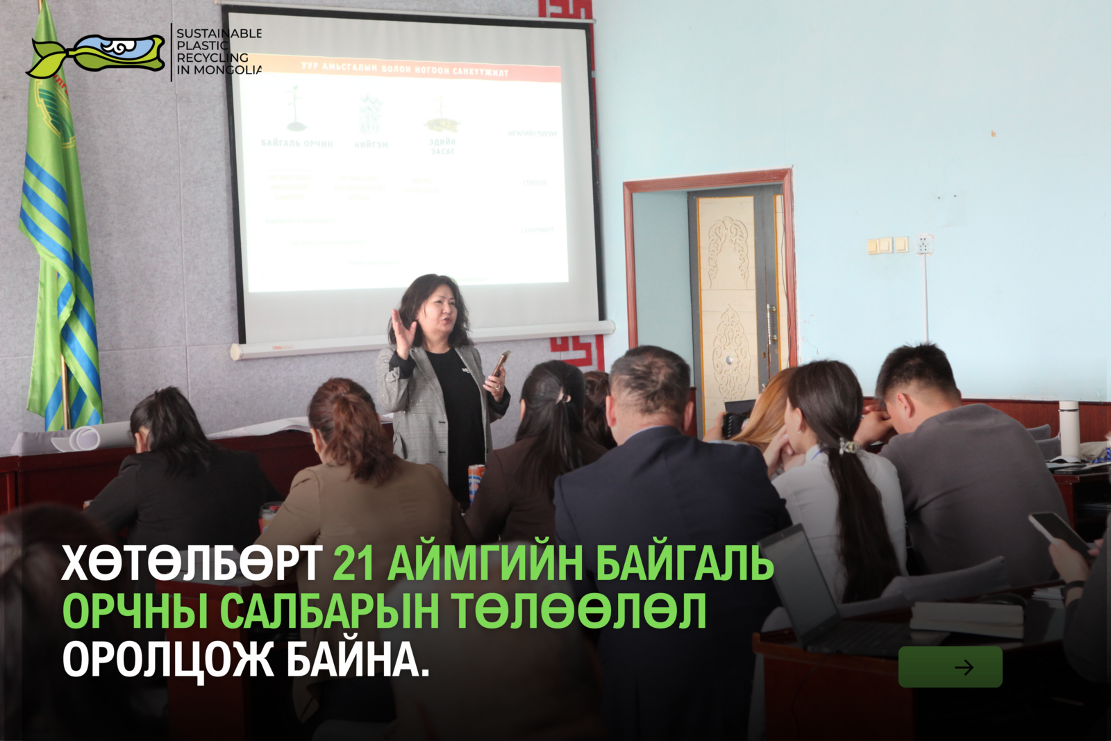 Хөтөлбөр 2 хоног үргэлжлэх бөгөөд өнөөдөр оролцогчид Булган аймгийн Булган суманд “Хүрээлэн буй орчны бохирдлыг бууруулах нь” сэдэвт бүтэн өдрийн сургалтад хамрагдана. Энэхүү сургалтаар манай улсад 2020 оноос хойш хэрэгжиж буй “Монгол улс дахь хуванцар хог хаягдлын дахин боловсруулалтын тогтвортой байдлыг хангах төсөл”-н багийнхан өнгөрсөн 4 жилийн турш хуримтлуулсан үнэт мэдлэг, сайн туршлагыг хуваалцана. Мөн салбарын мэргэжилтнүүд хууль эрхзүйн орчин, өнөөгийн нөхцөл байдлын талаар танилцуулна.