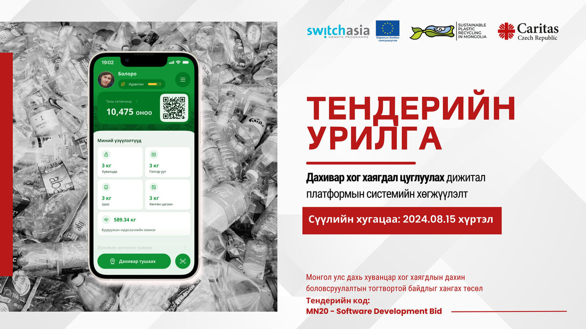 Каритас Чех Репаблик (КЧР) ОУБ нь Европын Холбооноос санхүүжүүлж буй “Монгол улс дахь хуванцар хог хаягдлын дахин боловсруулалтын тогтвортой байдлыг хангах” төслийг Монголын Байгаль Орчин, Аюулгүй Байдлын Төв (МБОАБТ) ТББ-тай хамтран хэрэгжүүлж байна.