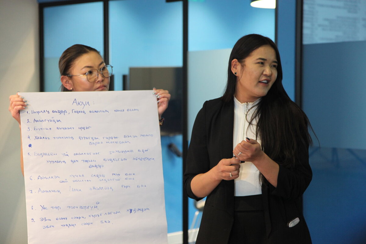 The training topics are interactive and are run by innovative experts in each focus area. So far, the topics covered include: organizational financial management by Mongoltax TMZ LLC's founder, Tax Specialist Advisor Tungalagmaa.Kh; company governance, internal policy, and risk management and training was conducted by Bartanbaatar.D, General Director of the Mongolian Institute of Human Resources, and Densmaa.T, Deputy Director of Mandal Financial Group; and marketing and sales management of recycled plastic products by Project Support Officer/Volunteer of the Australian Volunteers Program, Zach Conn and Business Mentor Ms. Murun Nyamdorj.