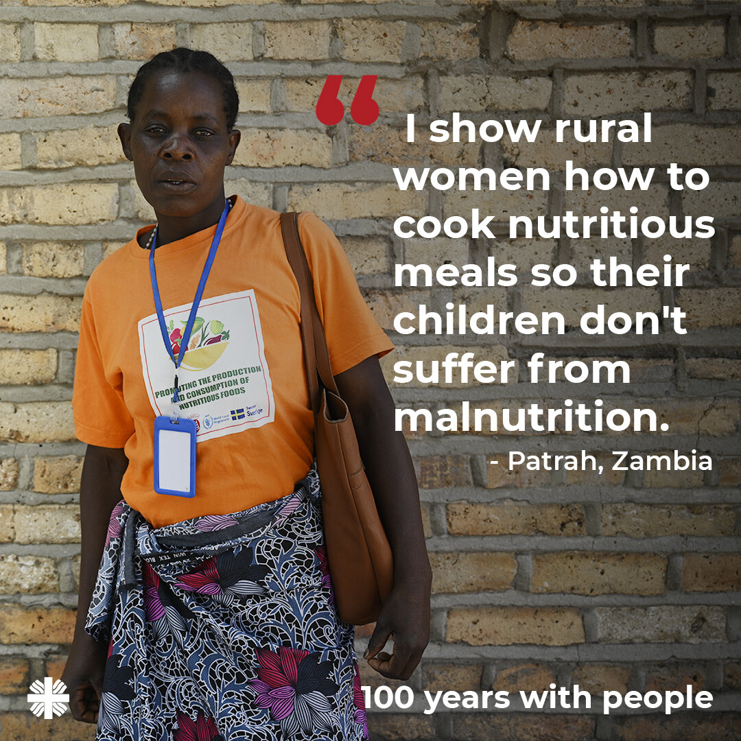 Patrah lives in rural Zambia, where young children often suffer from malnutrition. Patrah is one of the community volunteers trained by @CCRZambia. The volunteers regularly visit the villagers and show them how to protect their families from malnutrition. Patrah and her colleagues hold demonstration cooking classes on nutritional meals and regularly weigh the children to see if they are developing properly.
