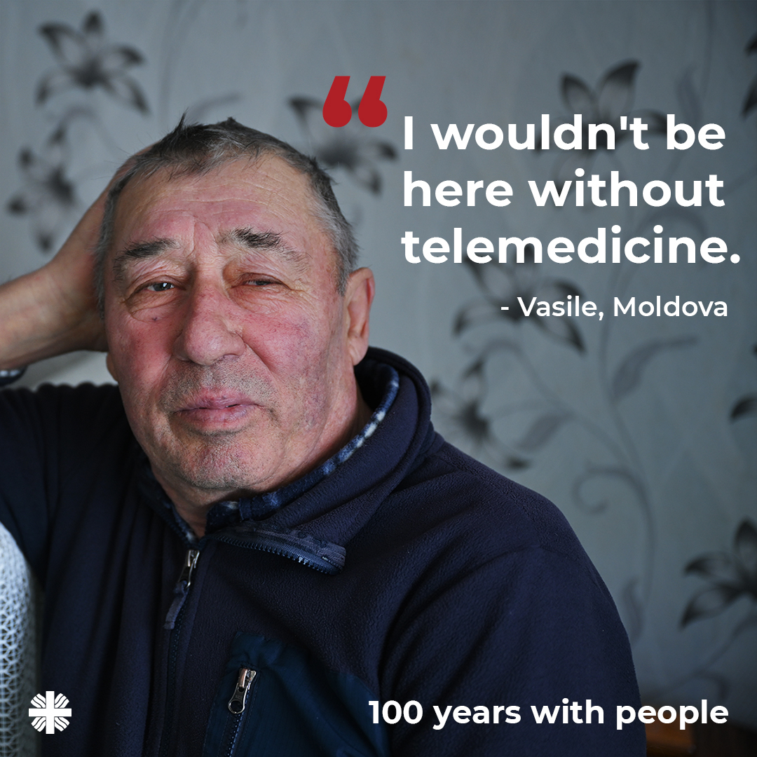 Vasile suffers from diabetes and limb pain, which makes it difficult for him to walk. Nurses and caregivers from the local home care centre run by @CCRinMoldova regularly visit his home. They help him with house chores and also bring tablet through which Vasile can remotely connect with his endocrinologist and a psychologist. The nearest specialists are 50 kilometres from his home, so telemedicine saves him a physically demanding and expensive trip to the hospital.